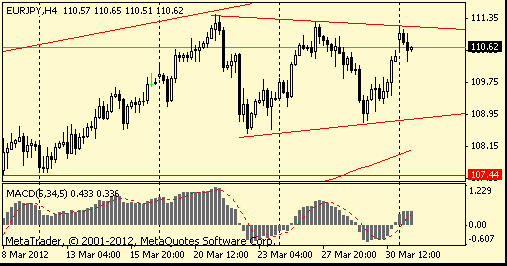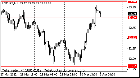 Иена выросла против всех наиболее торгуемых валют на фоне обеспокоенности инвесторов об ослаблении китайского производства после выхода противоречивых данных по индексу менеджеров по закупкам. Так, опубликованные на выходных данные об индексах деловой активности в промышленности Китая в марте 2012 года носили неоднозначный характер и, с одной стороны, сигнализировали улучшение в промышленности, а с другой — показали падение экспортных заказов и замедление в отрасли, что не позволило рынкам остаться в плюсе надолго. Отметим, что вчера китайская государственная Федерация логистики и закупок сообщила, что индекс менеджеров по закупкам (Purchasing managers index) вырос в марте 2012 года на 2,1 пункта и достиг максимального за 11 месяцев значения в 53,1 пункта, развеяв опасения инвесторов относительно риска «жесткой посадки» китайской экономики.