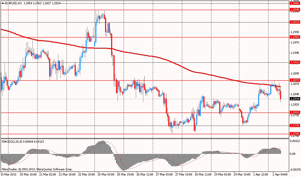 Впервые за месяц доллар упал ниже Y93.00 иен в ожидании публикации данных по рынку труда США. Завтра выйдет статистика от исследовательского института ADP. Согласно прогнозам экономистов, в прошлом месяце, рост занятости может вырасти на 200 тыс рабочих мест, после роста на 198 тыс в феврале. Официальные цифры от министерства труда США выйдут 5 апреля, и скорее всего, зафиксируют уровень безработицы в марте таким же, как и в прошлом отчетном месяце, на значении 7,7%.