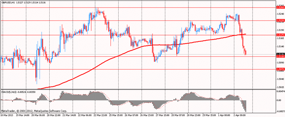 Пара GBP/USD остается под давлением сегодня, особенно после выхода отчета предварительного PMI в сфере обрабатывающей промышленности за март (падение до 46.8 от 47.9 против 46.6 по прогнозам", что позволило паре упасть до минимума 1.5114 в течение нью-йоркской сессии.