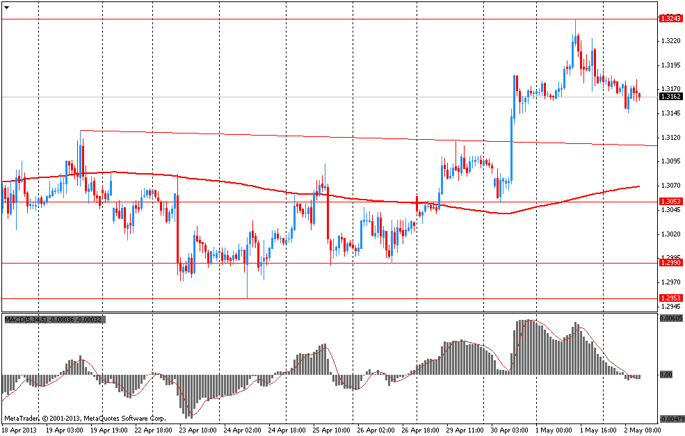 Курс фунта снизился против доллара после понижения ставки ЕЦБ на 0,25% до 0,5%. Заметим также, что сегодняшний отчет показал, что индекс деловой активности для строительного сектора Великобритании в апреле вырос до уровня 49,4 пункта. Сегодняшние данные подтвердили динамику вчерашнего показателя для промышленного сектора страны. Посмотрим, что продемонстрируют данные по сектору услуг, которые будут представлены завтра. Среди британских индексов PMI только индекс для сферы услуг указывает на расширение сектора. Значение показателя в марте было на уровне 52,4 пункта, в апреле ожидается рост до 52,5 пунктов против 49,4 пунтка для строительного сектора и 49,8 для промышленного. Что касается индексов PMI для стран континентальной Европы, то их окончательные значения вышли выше предварительных и прогнозов (за исключением Германии - на уровне прогноза), хотя и продолжили указывать на снижение активности в секторах (все показатели вышли ниже отметки в 50 пунктов).