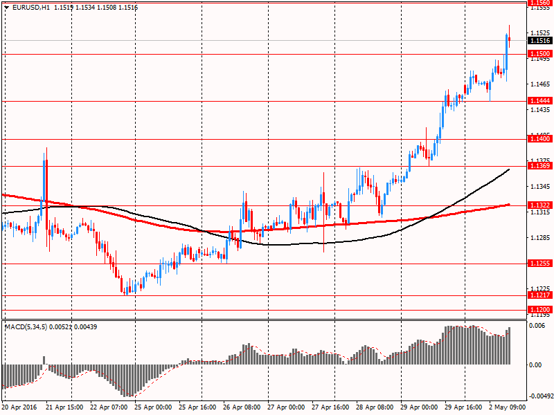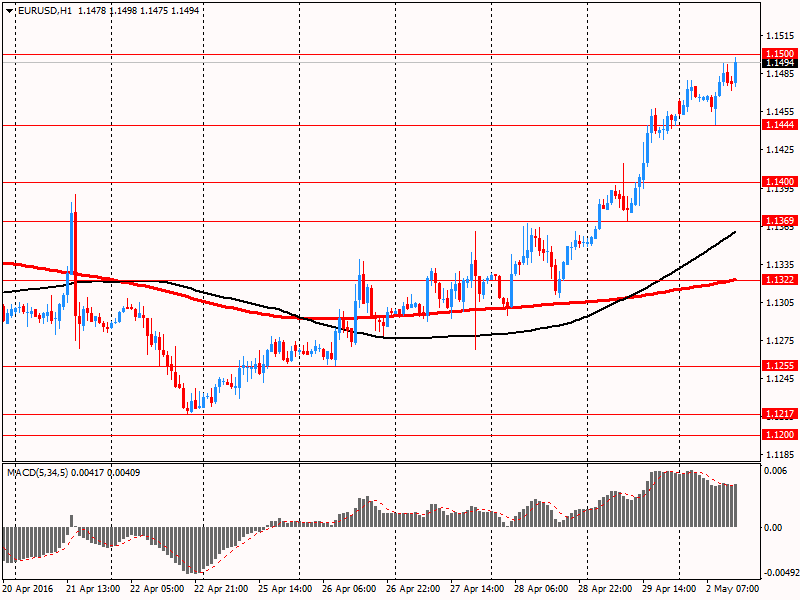 Доллар США значительно подешевел против евро, достигнув минимума 26 августа 2015 года, что было вызвано техническими факторами и публикацией слабой статистики по США. Окончательные данные, представленные Markit, показали: с учетом сезонных колебаний производственный индекс PMI снизился в апреле до 50,8 с 51,5 в марте. Значение совпало с предварительной оценкой и прогнозами. Однако, индекс опустился ниже среднего показателя за 1-й квартал 2016 года (51,7) и указал на самое слабое улучшение общих условий за чуть более 6,5 лет. Производство почти не изменилось в апреле, а темпы расширения были минимальными с октября 2009 года. В Markit заявили, что слабый клиентский спрос, неопределенность в отношении экономических перспектив и более низкие капитальные расходы в энергическом секторе, оказывали давление на промышленное производство в апреле. Между тем, производители вновь зафиксировали небольшое увеличение заказов, но темпы роста были самыми слабыми с декабря 2015 года. Объем новых заказов из-за рубежа сократился максимальными темпами за 1,5 года, а число невыполненных заказов уменьшилось в третий раз подряд, записав наибольшие темпы с сентября 2009 года. На фоне этого темпы создания новых рабочих мест оказались самыми слабыми почти за три года.