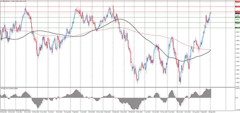 Курс фунта вырос против доллара на фоне беспокойства, вызванного негативными событиями в отношении бюджета США. Напомним, что до сих пор не решен вопрос с повышением лимита госдолга США. Чтобы избежать дефолта, который может произойти уже 17 октября, республиканцам в Сенате и демократам в Белом доме необходимо достичь договоренностей.