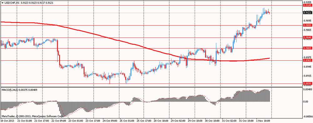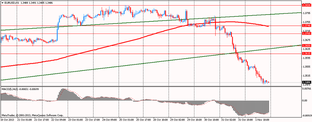 В пятницу курс евро существенно снизился против доллара, оказавшись под давлением на фоне возросших ожиданий в отношении снижения ставки на декабрьском заседании ЕЦБ. Поддержку доллару оказали данные о том, что в США экономическая активность в производственном секторе в октябре увеличилась в течение пятого месяца подряд. В целом экономика растёт на протяжении 53-го месяца подряд. Индекс деловой активности с сентября вырос на 0,2% до 56,2. Индекс растёт каждый месяц с июня, и значение в октябре максимальное за 2013 год.