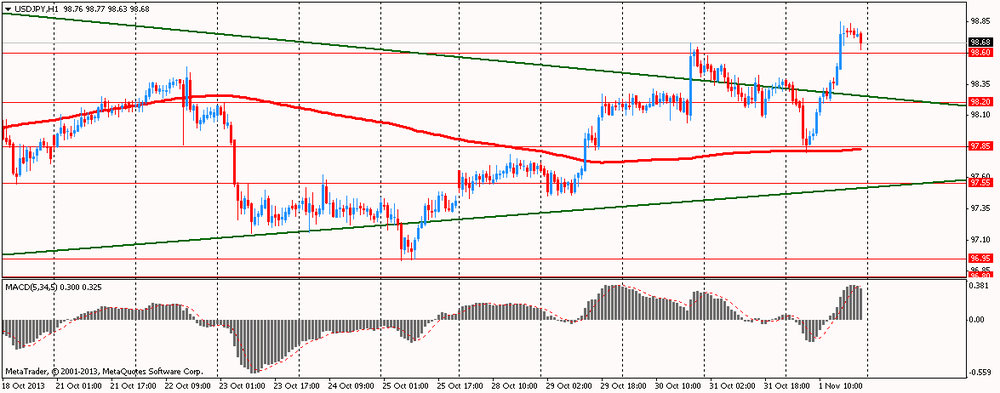 Результаты по обращениям за пособиями по безработице в США оказали незначительную поддержку доллару. Согласно отчёту, число заявок сократилось на 10 тыс. за неделю на 25 октября, что чуть лучше прогноза. Также на укрепление доллара оказали влияние данные о том, что индекс деловой активности в промышленности Чикаго вырос с 55,7 в сентябре до 65,9 в октябре, это самый большой рост индекса за три десятилетия, с июля 1983 г.