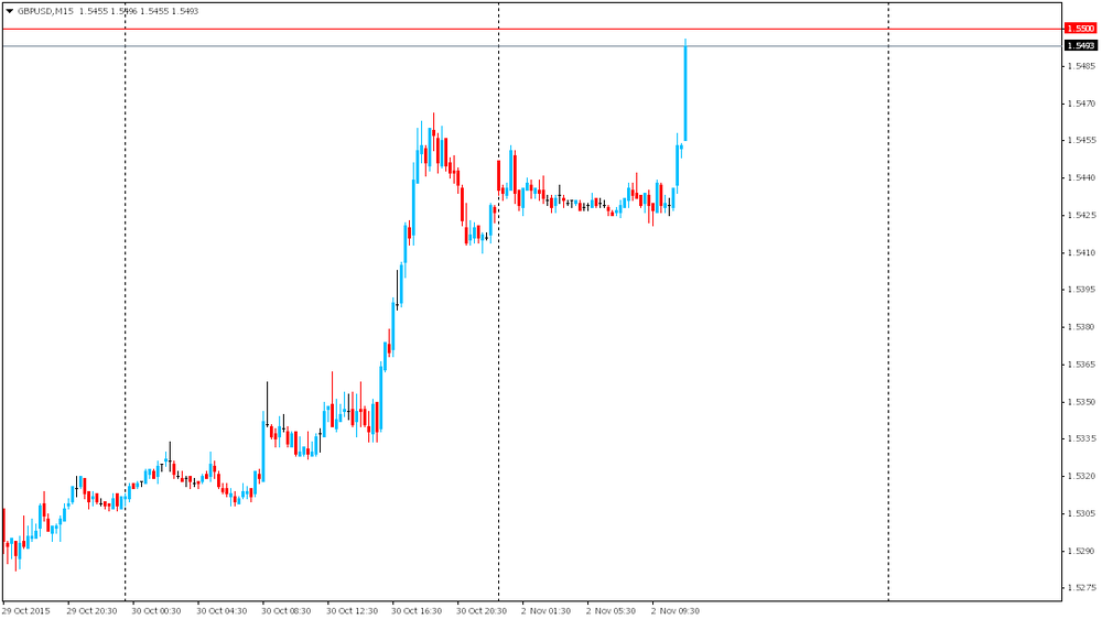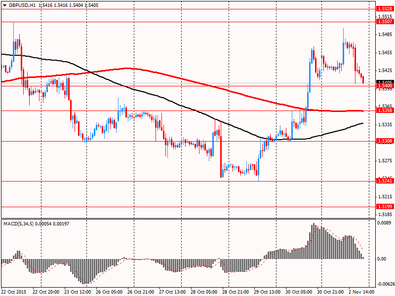 Фунт резко подешевел против доллара, приблизившись до отметки $1.5400, что было связано с публикацией данных по деловой активности США. Отчет от ISM показал, что в октябре активность в производственном секторе США практически не изменилась, слегка превысив при этом средние прогнозы экспертов. Индекс PMI для производственной сферы США составил в октябре 50,1 пункта против 50,2 пункта в сентябре. Ожидалось, что показатель опустится до 50 пунктов. Тем временем, индекс PMI в производственном секторе США от Markit вырос к 6-месячному максимуму в октябре на фоне повышения компонентов объема производства, новых заказов и занятости. Окончательный индекс PMI вырос до 54,1 от 53,1. Новые заказы на экспорт продолжили расти, компонент занятости восстановился от 27-месячного минимума, отмеченного в сентябре. Закупочные цены продолжили снижаться на фоне удешевления сырья, а отпускные цены выросли, но незначительно.