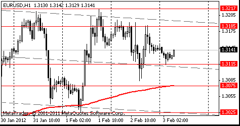 Евро компенсировал понесенные потери после того, как Европейский центральный банк заявил, что рассматривает возможность использования его ресурсов, чтобы поддержать программу помощи Греции. Поддержку евро оказали уложившиеся в рамки прогноза данные о росте деловой активности в январе в еврозоне. Так, композитный индекс деловой активности в области промышленного производства и сферы услуг для 17 стран еврозоны, рассчитываемый Markit Economics, по окончательной оценке, вырос в январе 2012 года до максимальной отметки за последние пять месяцев в 50,4 пункта с 48,3 пункта в декабре 2011 года. Значение индекса выше 50 пунктов указывает на рост экономической активности, ниже — на ее спад. Таким образом, деловая активность вернулась к росту после снижения в течение последнего квартала 2011 года.