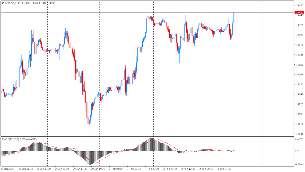 Фунт значительно подорожал против доллара, достигнув максимума с 8 января. Основную поддержку валюте оказали данные по деловой активности. Как стало известно, сектор услуг Британии продолжил демонстрировать улучшение в январе, несмотря на растущие опасения касательно мировой экономики. Индекс менеджеров по закупкам для сферы услуг от Markit/CIPS вырос до 55,6 пункта в январе против 55,5 пункта в декабре. Экономисты ожидали, что индекс снизится до 55,3 пункта. Рост цен на сырье в январе был одним из самым слабых за последние шесть лет, несмотря на признаки некоторого давления на компании, чтобы увеличить зарплату, сказали в Markit. Также в компании подсчитали, что британская экономика, которая в основном полагается на сектор услуг, расширится на 0,6 процента в первом квартале 2016 года, что будет немного больше роста на 0,5 процента, зафиксированного в последние три месяца прошлого года. Но Крис Уильямсон, главный экономист Markit, сказал, что различные "встречные ветра" продолжают негативно отражаться на экономике страны. Данные показали, что объем заказов упал самыми быстрыми темпами почти за почти три года, а настроения среди предпринимателей в секторе услуг были самыми слабыми с 2013 года. Опрос также выявил, что компании были обеспокоены замедлением экономического роста Китая, волатильность финансового рынка, повышением процентных ставок в США и о возможностью выхода Британии из ЕС.