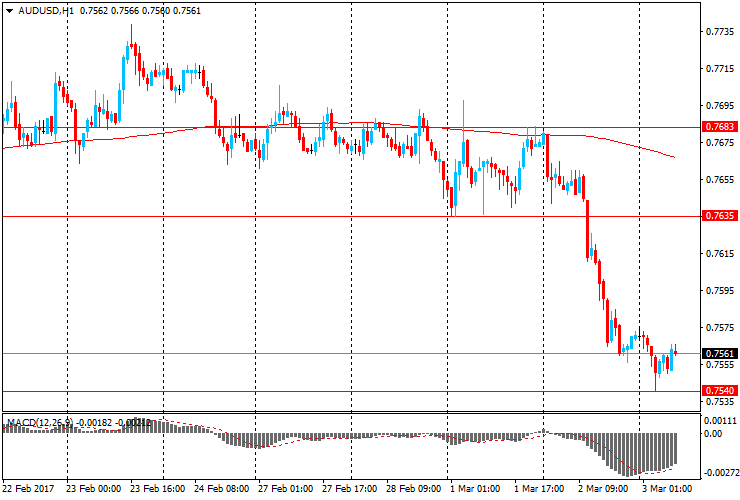 Австралийский доллар продолжил снижаться, чему в некоторой степени способствовали данные по индексу активности в сфере услуг Китая - главного экономического партнера Австралии. Индекс деловой активности в секторе услуг Китая от Markit/Caixin в феврале составил 52,6 пункта, что ниже предыдущего значения 53,1. Несмотря на снижение индекс остается выше значения 50, указывая на стабильный рост в секторе