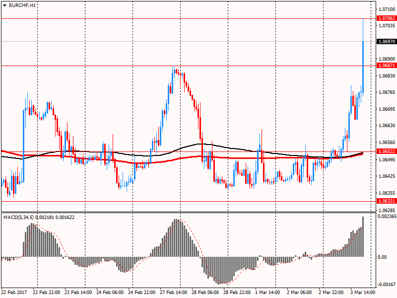 Канадский доллар снизился против доллара США, достигнув 2-месячного минимума, но затем вернулся до уровня открытия. Причиной роста пары USD/CAD было повышение доходности облигаций США и усиление вероятности ужесточения денежно-кредитной политики ФРС в марте. Кроме того, поддержку паре оказали данные по США. Индекс деловой активности в сфере услуг США, рассчитываемый Институтом управления поставками (ISM), вырос до уровня 57,6 пунктов в феврале по сравнению с 56,5 в январе. Последнее значение оказалось самым высоким с августа 2015 года. Аналитики прогнозировали, что показатель останется без изменений. В ISM заявили, что расширение активности в сфере услуг фиксируется уже 85-й месяц подряд. В целом, суб-индексы проявили себя следующим образом: индекс новых заказов в феврале вырос до 61,2 против 58,6 в январе, индекс новых экспортных заказов увеличился до 57,0 с 48,0, индекс цен снизился до 57,7 с 59,0, индекс занятости вырос до 55,2 с 54,7, индекс деловой активности улучшился до 63,6 с 60,3, индекс поставок ухудшился до 50,5 с 52,5, индекс товарно-материальных запасов вырос до 52,0 с 48,0, а индекс невыполненных заказов вырос до 54,0 с 50,0 в январе.