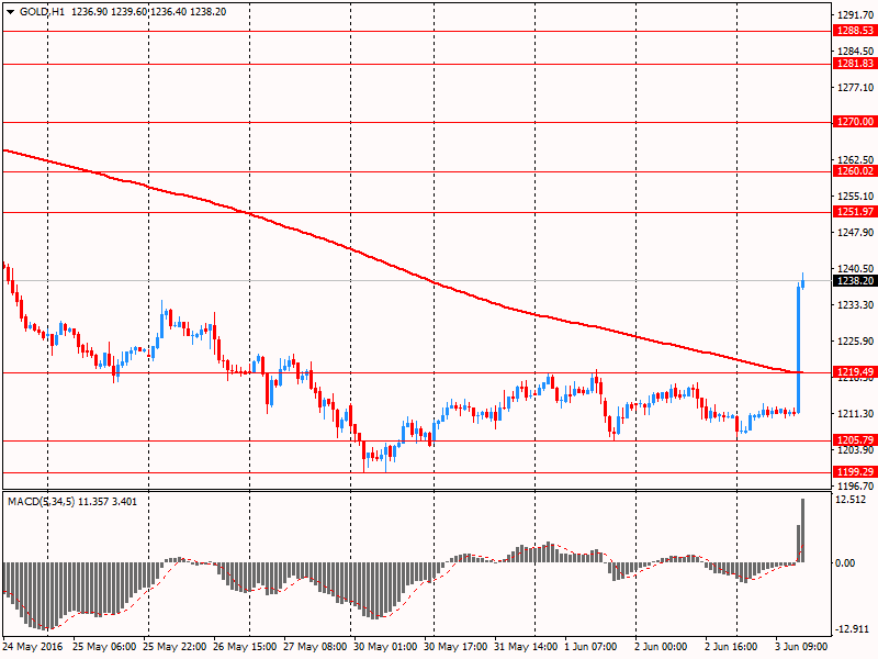 Цены на золото заметно выросли после того, как данные Минтруда США продемонстрировали резкое замедление темпов найма персонала в мае. Такие данные по рынку труда ослабили мнение о повышении процентной ставки ФРС в ближайшие месяцы. Читать далее