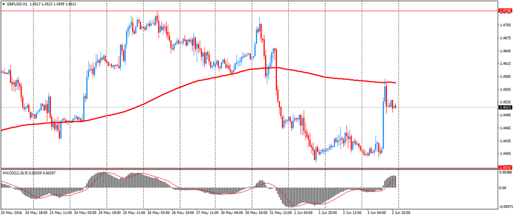 Ранее в пятницу небольшую поддержку фунту оказали сильные данные по Британии. В Markit Economics сообщили, что деловая активность в сфере услуг Британии заметно выросла по итогам мая, превысив прогнозы экспертов, и восстановившись после достижения 38-месячного минимума в апреле. Индекс менеджеров по закупкам для сектора услуг от Markit/CIPS поднялся в мае до 53,5 пункта по сравнению с 52,3 пункта в апреле. Экономисты прогнозировали рост показателя до 52,5 пункта. Расширение активности отмечалось в каждом месяце с января 2013 года, но последний темп роста был самым медленным за последние три года, говорится в исследовании. Показатель ожидаемой активности в течение следующих 12 месяцев укрепился, несмотря на самый медленный прирост новых заказав за последние 41 месяц, что было связано с усилением неопределенности в преддверии референдума по вопросу членства в ЕС. Занятость продолжила повышаться в мае, зафиксировав 41-й месячный рост подряд, но темпы роста оказались самыми слабыми с августа 2013 года. Некоторые фирмы сообщили, что недавнее введение национального прожиточного минимума было основной причиной такой слабости. Тем временем, темпы повышения закупочных цен снизились в мае, впервые с января, но остались одними из самых высоких за последние два года, главным образом благодаря растущей стоимости рабочей силы и топлива. Фирмы также увеличили свои расходы в мае, что в некоторых случая было связано с более высокими затратами на рабочую силу. Кроме того, в отчете сообщалось о слабом притоке новых заказов, причиной чему была задержка контрактов из-за неопределенности в отношении референдума. Отвечая на вопрос по поводу влияния Брекзита на их текущий бизнес, 28% фирм сообщили о общем негативном воздействии. Тем не менее, 51% компаний заявили, что данные опасения пока не отразились на их бизнесе.