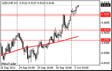 В понедельник, в 1:00 GMT Китай опубликует индекс активности в непроизводственной сфере за сентябрь. В 7:00 GMT выйдет британский индекс цен на жилье от HBOS за сентябрь. Швейцария в 7:15 GMT опубликует данные по изменению реального объема розничной торговли за август (ожидается увеличение до 4.5% при 1.9% в предыдущем месяце), а в 7:30 GMT - индекс PMI от SVME за сентябрь. Европейские страны опубликуют индекс PMI для производственной сферы за сентябрь: 7:55 GMT - Германия, 8:00 GMT - Еврозона, 8:30 GMT - Британия. В 14:00 GMT в США выйдет производственный индекс ISM за сентябрь. Закончится дань публикацией в 21:00 GMT индикатора настроений деловой среды от NZIER за 3 квартал Новой Зеланди.