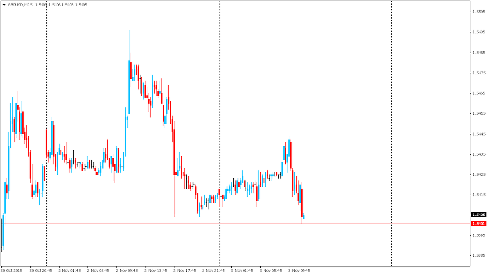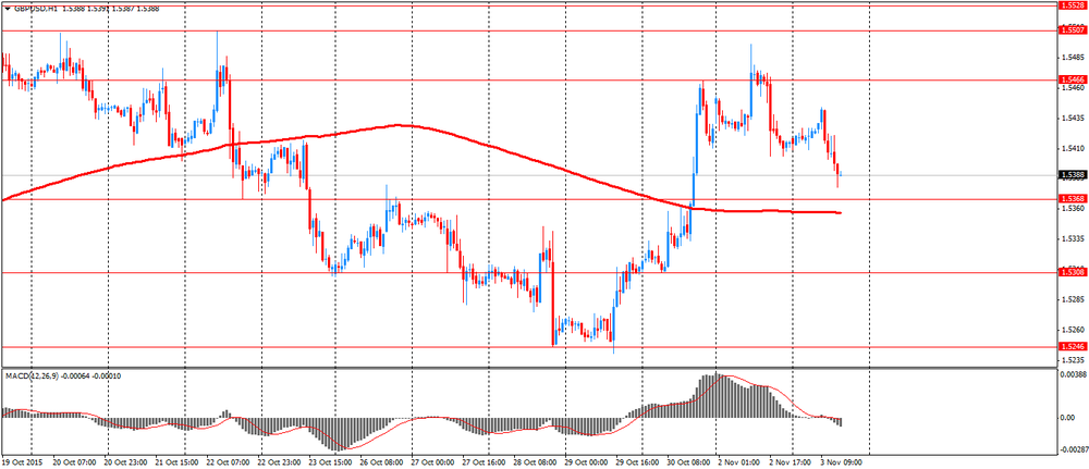 Фунт резко подешевел против доллара США, приблизившись до отметки $1.5400, что было связано с публикацией данных по деловой активности США. Отчет от ISM показал, что в октябре активность в производственном секторе США практически не изменилась, слегка превысив при этом средние прогнозы экспертов. Индекс PMI для производственной сферы США составил в октябре 50,1 пункта против 50,2 пункта в сентябре. Ожидалось, что показатель опустится до 50 пунктов. Тем временем, индекс PMI в производственном секторе США от Markit вырос к 6-месячному максимуму в октябре на фоне повышения компонентов объема производства, новых заказов и занятости. Окончательный индекс PMI вырос до 54,1 от 53,1. Новые заказы на экспорт продолжили расти, компонент занятости восстановился от 27-месячного минимума, отмеченного в сентябре. Закупочные цены продолжили снижаться на фоне удешевления сырья, а отпускные цены выросли, но незначительно.