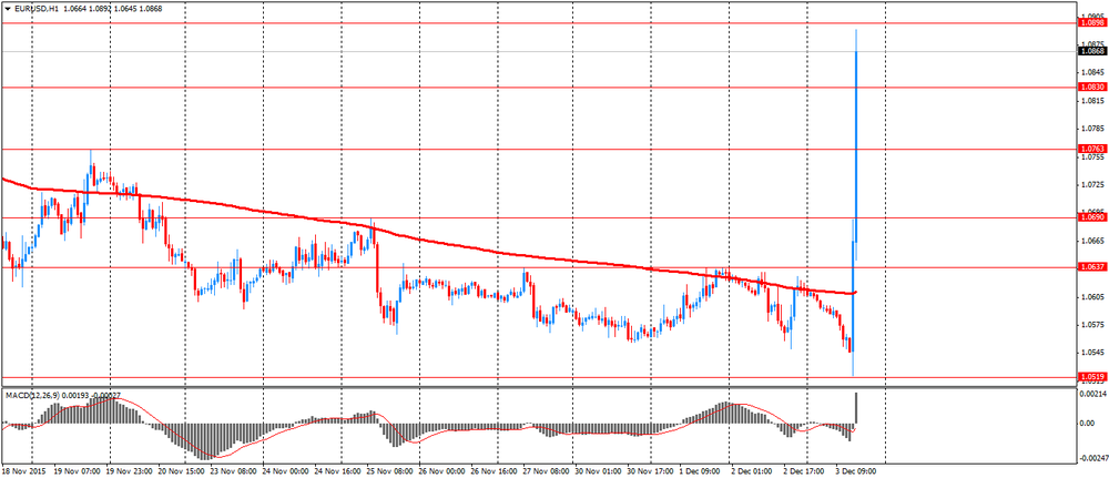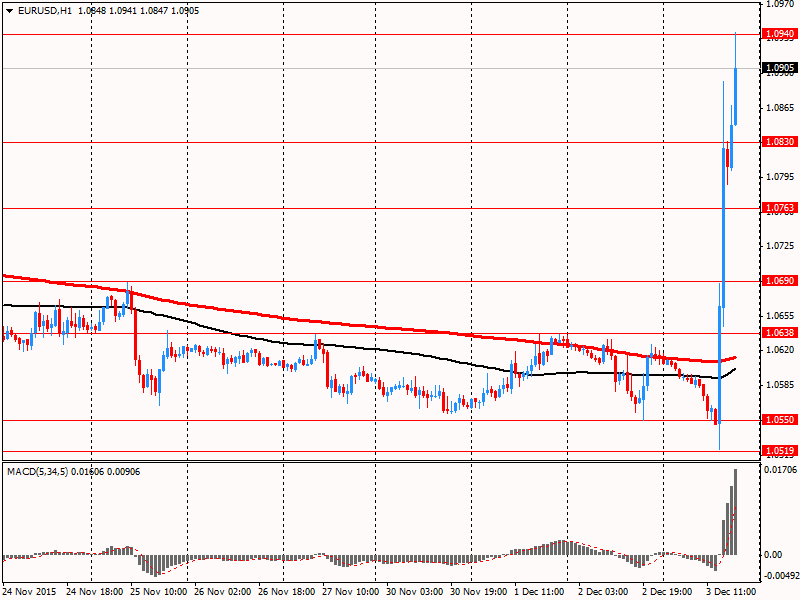 Евро существенно подорожал против доллара, поднявшись выше уровня $1.0900, что было спровоцировано итогами сегодняшнего заседания ЕЦБ. Для борьбы со слишком низкой инфляцией ЦБ снизил ставку по депозитам до -0,3% с -0,2% и продлил сроки действия программы покупки активов до конца марта 2017 года. Однако, ЦБ оставил без изменений базовую ставку (на отметке 0,05%) и сохранил параметры программы выкупа активов на уровне 60 млрд. евро в месяц. Многие аналитики ожидали, что объем QE будет увеличен на 15 млрд. евро в месяц. Между тем, ЕЦБ расширил спектр приобретаемых активов, включив в них региональные и местные облигации. Этот шаг позволит банку продолжать покупки активов несмотря на отказ от покупок тех ценных бумаг, чья доходность ниже новой ставки по депозитам. ЦБ также пересмотрел прогнозы по инфляции. Ожидается, что годовая инфляция будет на уровне 0,1% в 2015 году, как и в сентябрьском прогнозе, 1,0% в 2016 году (1,1% в сентябрьском прогнозе) и 1,6% в 2017 году (против 1,7% ранее). Кроме того, ЦБ повысил прогноз по росту ВВП на 2015 год до 1,5% с 1,4%. Прогноз на 2016 год был оставлен на уровне +1,7%, а на 2017 год был улучшен на 0,1%, до +1,9%.