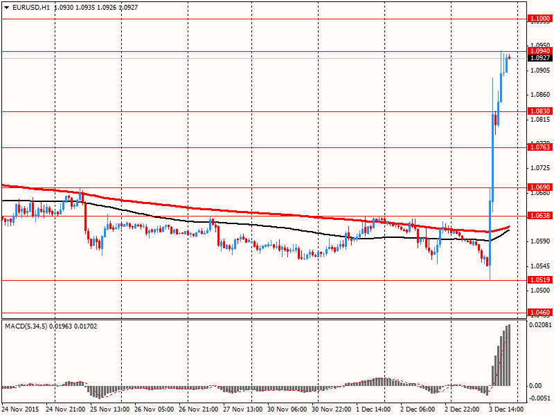 Сегодняшнее решение ЕЦБ стало первым шагом к возможному расхождению курсов денежно-кредитной политики двух крупнейших в мире центральных банков. Как ожидается, в этом месяце ФРС США повысит процентные ставки с практически нулевого уровня, на котором они находятся уже семь лет. Согласно данным CME по фьючерсам на ставку, на настоящий момент вероятность повышения ставки ФРС на декабрьском заседании составляет почти 75 процентов. На завтра запланирована публикация последних данных по рынку труда США перед решением ФРС. По прогнозам, число занятых в несельскохозяйственном секторе выросло на 200 тыс. в ноябре после повышения на 271 тыс. в октябре. Ранее сегодня глава ФРС Йеллен отметила, что политики будут внимательно анализировать ноябрьский отчет по занятости. Также Йеллен заявила, что ужесточение денежно-кредитной политики будет "постепенным", отчасти из-за усиления доллара. По словам Йеллен, усиление доллара произошло на фоне ожиданий относительно ужесточения денежно-кредитной политики ФРС. "Сочетание замедления экономического роста за рубежом и усиления доллара привело снижению объемов экспорта и росту импорта ввиду дешевизны иностранных товаров. Такая ситуация негативно сказывается на экономике США", - отметила Йеллен. "Тем не менее, потребительские расходы, капиталовложения компаний и инвестиции в жилищное строительство - на которые приходится 85% всех расходов - по-прежнему остались на высоком уровне. В целом это будет продолжать способствовать тому, что темпы роста экономики США будут оставаться выше тренда ", - резюмировала Йеллен.