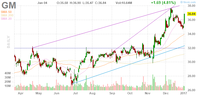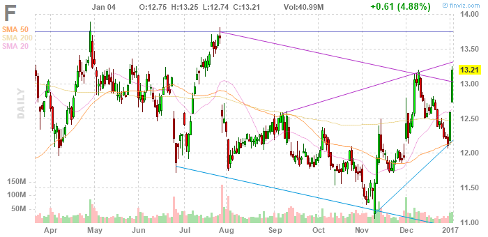 На текущий момент акции Ford Motor Company (F) котируются по $13,21 (+4,88%), а General Motors Company (GM) по $36,84 (+4,81%)