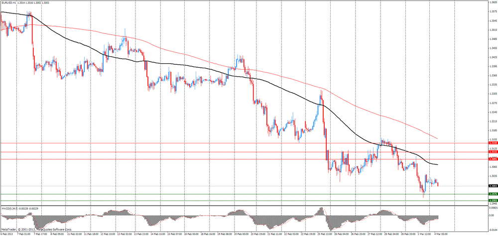 Курс евро колеблется по отношению к доллару на фоне несостоятельности итальянских политиков создать коалицию. Давление на валюту оказывают предстоящие данные по ВВП Италии за четвертый квартал, которые покажут, что экономика региона сократилась в четвертом квартале 2012 года.