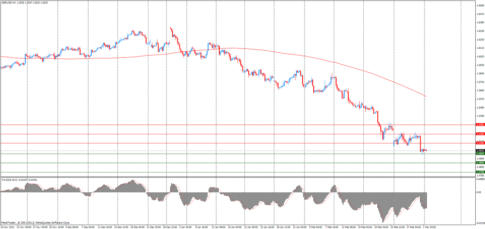 Иена выросла против всех, кроме одной из 16 основных валют, после того, как китайский индекс CSI 300 снизился до минимального значения за последние два года. Кроме того, иена укрепилась даже после того, как кандидат на пост следующего управляющего Банка Японии Харухико Курода, пообещал проведение более мягкой денежно-кредитной политики, чтобы победить дефляцию в экономике страны. Курода, представленный премьером Абэ, заявил сегодня в парламенте, что Банк Японии будет делать все возможное, чтобы положить конец 15-летнему периоду дефляции в Японии.Фунт укрепился против евро и доллара на фоне обеспокоенности, что формирование правительства Италии может затянуться, и окажет негативное влияние на восстановление экономики 17 стран валютного блока. Кроме того, представленный сегодня отчет показал, что цены на жилье в Великобритании увеличились в феврале, зафиксировав первый рост за девять месяцев. Также сегодня стало известно, что индекс деловой активности упал по итогам прошлого месяца до уровня 46,8, по сравнению с 48,7 в январе. Заметим, что согласно средним оценкам аналитиков значение данного показателя должно было вырасти до отметки 49,2. Напомним, что значение данного показателя ниже уровня 50 предлагает сокращение в секторе. В докладе также было сказано, что общий объем производства резко снизился, продемонстрировав при этом максимальные темпы падения за последние 3 года. Между тем, стало известно, что количество новых заказов сократилось, ускорив при этом свои темпы, в то время так сектор занятости показал незначительное увеличение.