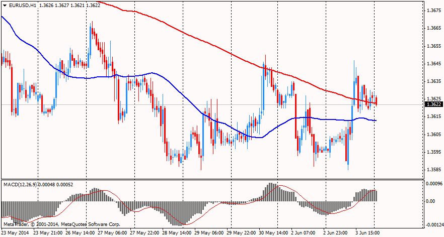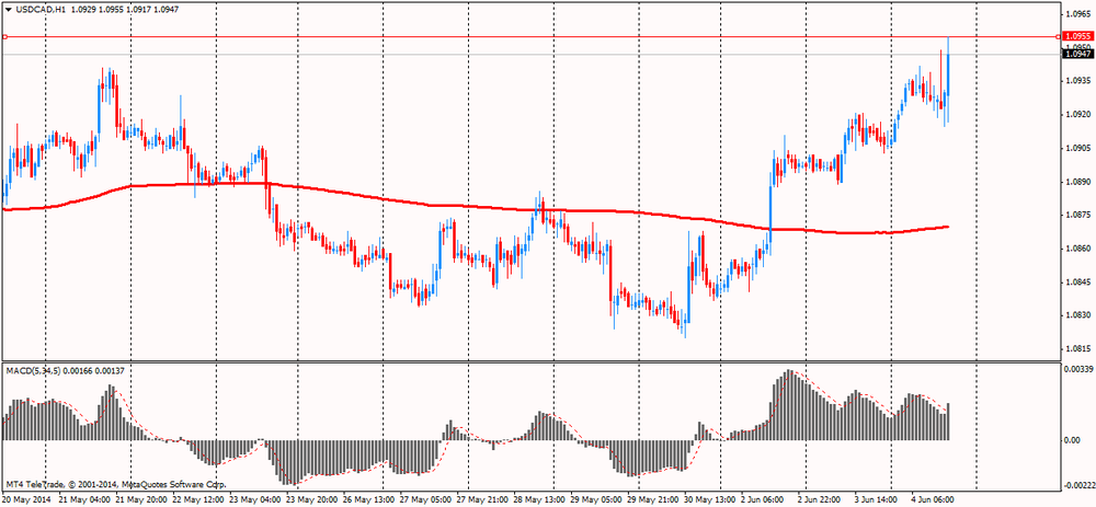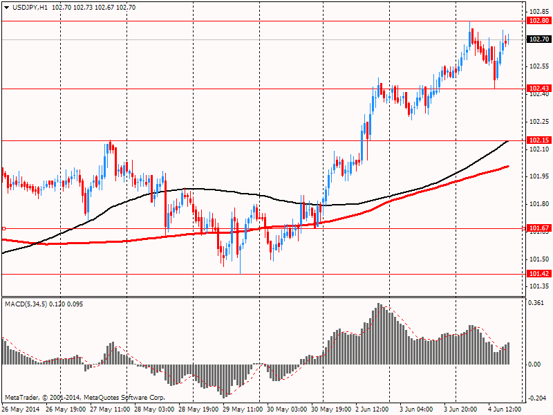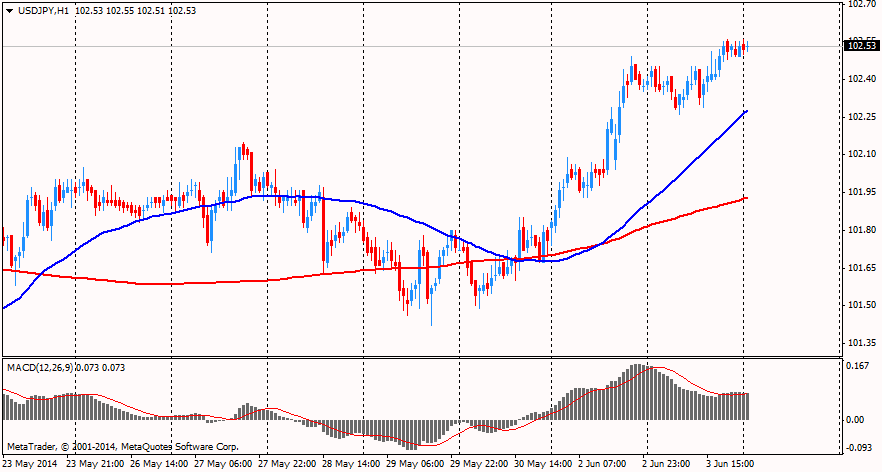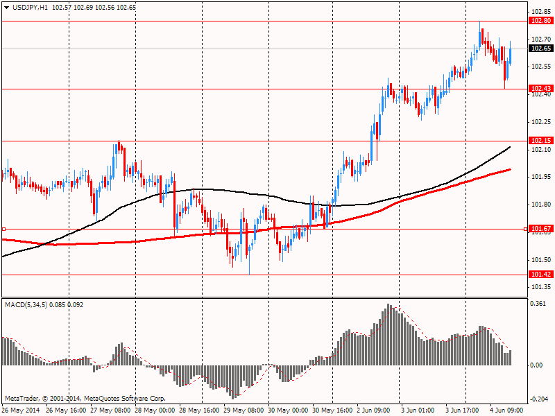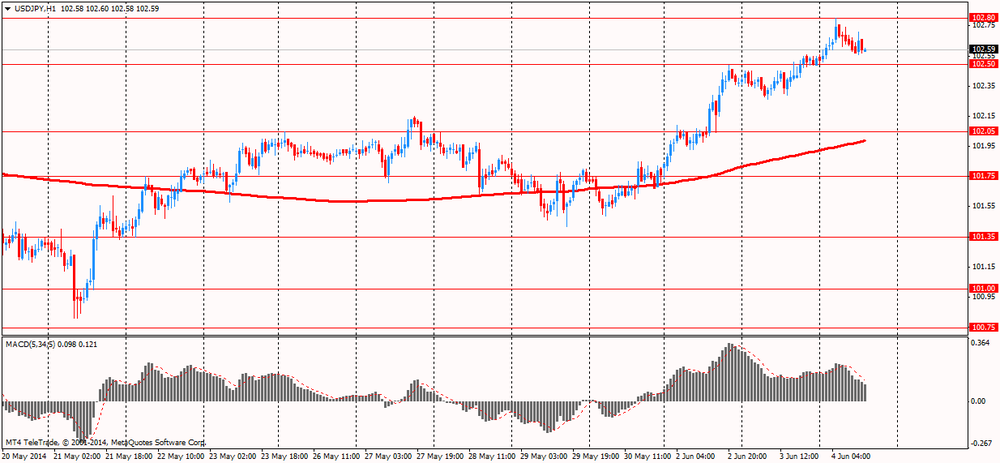 Поддержку доллару оказали данные по США, которые показали: индекс деловой активности в сфере услуг США вырос в мае 2014 года до 56,3 пункта - максимального уровня с августа 2013 года, по сравнению с 55,2 пункта в апреле. Эксперты ожидали повышения показателя до 55,6 пункта. Превышение индексом отметки в 50 пунктов свидетельствует о росте деловой активности в сфере услуг, тогда как значение индекса менее 50 пунктов говорит о ее снижении. Подындекс, показывающий уровень занятости в сфере услуг США, в мае поднялся до 52,4 пункта с 51,3 пункта месяцем ранее. Показатель новых заказов подскочил до 60,5 пункта с 58,2 пункта, а подындекс бизнес-активности - до 62,1 пункта с 60,9 пункта. ISM рассчитывает индекс ISM Non-Manufacturing на основании данных компаний из 62 сегментов сферы услуг, на долю которой приходится почти 90% американского ВВП. Среднее значение индикатора после окончания рецессии в июне 2009 года равнялось 53,7 пункта.