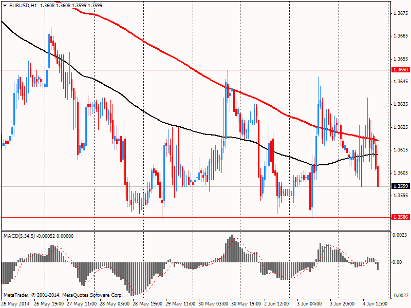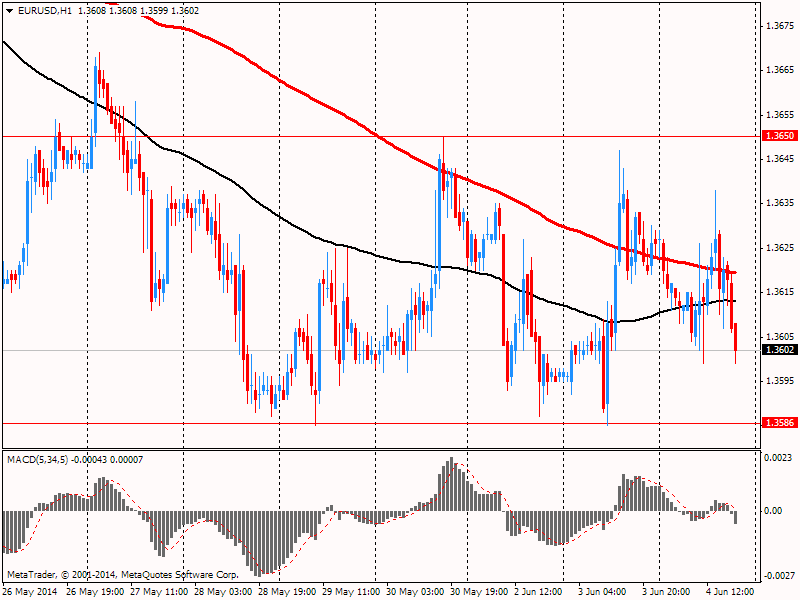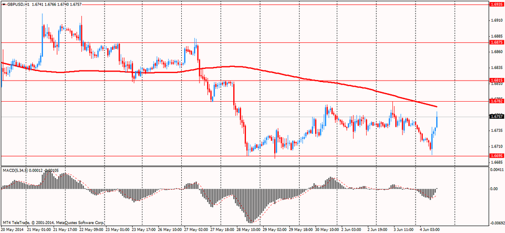 Росту евро не помешали даже представленные данные по инфляции, оказавшиеся хуже прогнозов. Как стало известно, инфляция в странах еврозоны замедлилась больше, нежели ожидалось в мае, что вызывает обеспокоенность по поводу дефляционного давления. Инфляция, согласно предварительным, оценкам снизилась до 0,5% в мае с 0,7% апреля. По прогнозам, инфляция должна была остаться на прежнем уровне. Инфляция остается ниже целевого уровня Европейского центрального Банка "ниже, но близко к 2%” шестнадцатый месяц подряд. Без учета продуктов питания, алкоголя и табака базовая инфляция замедлилась до 0,7 процента с 1 процента месяц назад.