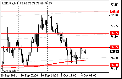 USD/JPY: пара торговалась в рамках диапазона Y76.55-Y76.75.