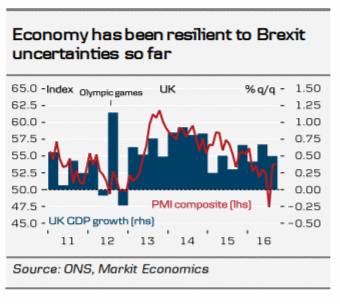 "Согласно нашему базовую сценарию, Великобритания будет двигаться в сторону выхода из Евросоюза", - отмечают в UBS. По мнению компании, еще слишком рано говорить о том, что рассмотрение данного вопроса в парламенте сократит вероятность "жестокого выхода", при котором страна потеряет доступ на единый рынок ЕС.
