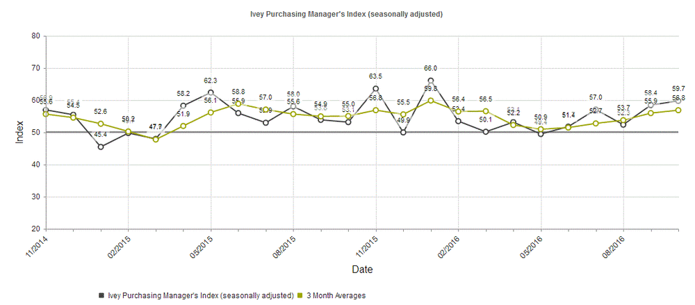 Тем не менее, значение выше 50 указывает на расширение. Последний подъем продлил текущую последовательность роста до трех лет.