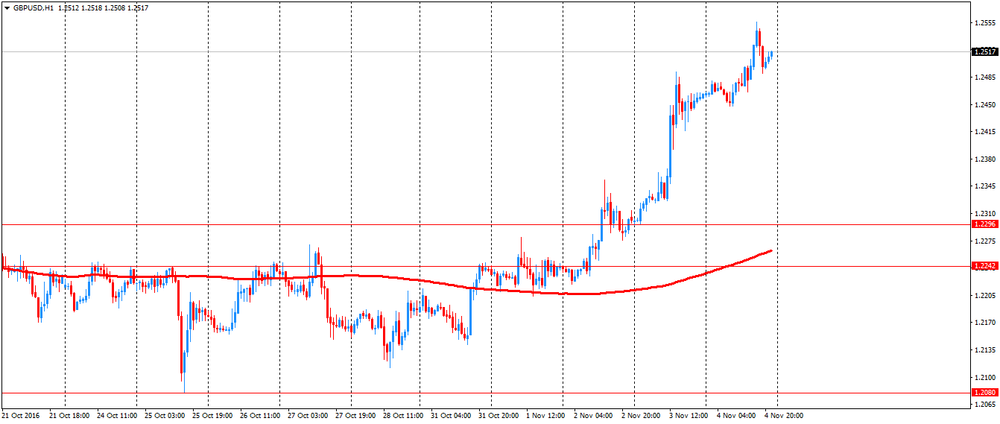 Фунт заметно вырос в среду против доллара США, приблизившись к максимуму 11 октября, чему способствовало общее ослабление американской валюты, позитивные показатели по Великобритании, а также новости, что Высокий суд Британии озвучит вердикт о том, кто должен инициировать формальный процесс выхода из Европейского союза - британские законодатели или правительство. Ранее отчет от Markit Economics / CIPS показал, что темпы роста активности в строительной отрасли Великобритании ускорились в октябре, достигнув 7-месячного максимума, чему в основном способствовало увеличение жилищного строительство. Однако, замедление роста новых заказов и резкое повышение цен на строительные материалы омрачают перспективы данного сектора. Согласно данным, индекс PMI в строительном секторе неожиданно улучшился в октябре - до 52,6 пункта с 52,3 пункта в сентябре. Аналитики прогнозировали снижение до 51,8 пункта.