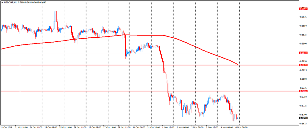 Доллар США в четверг снизился в преддверии выхода данных по американскому рынку труда. Давление на доллар также оказала вышедшая в четверг статистика. Министерство труда США сообщило: число американцев, впервые подавших заявки на получение пособия по безработице, увеличилось на прошлой неделе, достигнув максимума с начала августа. Согласно отчету, с учетом сезонных колебаний количество первичных обращений за пособием по безработице на неделе, завершившейся 29 октября, выросло на 7 000, до 265 000. Экономисты ожидали, что число обращений составит 258 000. Индекс деловой активности в сфере услуг США, рассчитываемый Институтом управления поставками (ISM), значительно ухудшился в октябре, достигнув уровня 54,8 по сравнению с 57,1 в предыдущем месяце. Согласно прогнозу, показатель должен был снизиться лишь до 56,0.