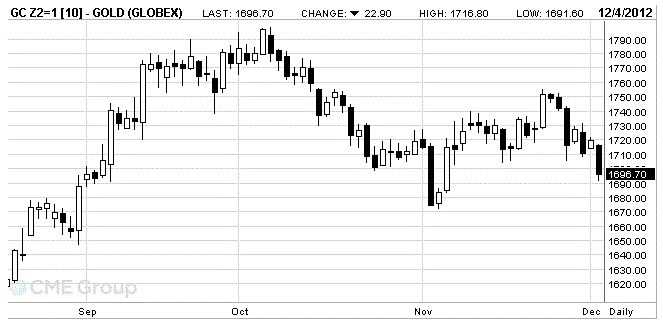 Стоимость декабрьского фьючерса на золото на COMEX сейчас составляет 1696.70 доллара за унцию.