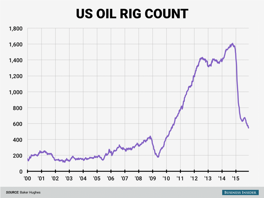 Напомним, на неделе с 23 ноября по 27 ноября число нефтяных буровых сократилось на 9 единиц и составило 555. В 2014 году в это же время в стране работало 1572 буровые вышки. Количество буровых вышек по добыче газа снизилось за неделю с 193 до 189, это почти вполовину меньше числа вышек, работавших год назад (344).