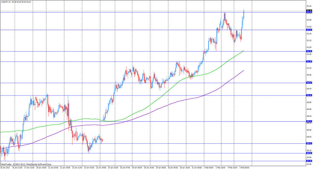 В Китае было отмечено ускорение роста сферы услуг в январе, а индекс PMI для сферы услуг еврозоны был пересмотрен в сторону повышения. Индекс PMI сектора услуг Германии показал за январь наиболее сильный рост с августа 2009 года, а сокращение сектора услуг Испании замедлилось до минимального темпа с июня 2011 года.