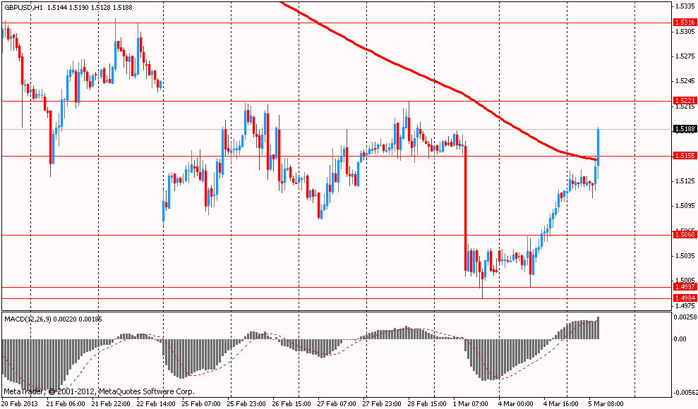 В Markit сообщили, что индекс менеджеров по снабжению (PMI) для сферы услуг Великобритании вырос выше ожиданий, до 51,8 с январского значения 51,5. Ранее вышедшие данные по розничным продажам в Великобритании показали, что продажи с учетом коррекции на сезонные колебания росли в феврале самыми быстрыми темпами за три года.