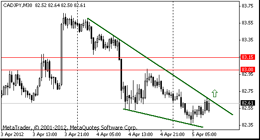 В случае продолжения роста сопротивление может оказать область Y82,55 (МА(200) для Н1) и выше Y83,00 (максимум 3 апреля).