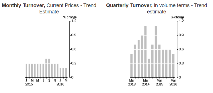 За первый квартал 2016 года розничные продажи, без учета инфляции, выросли на 0,5%, однако значение оказалось ниже ожиданий экономистов 0,7% и предыдущего значения 0,6%