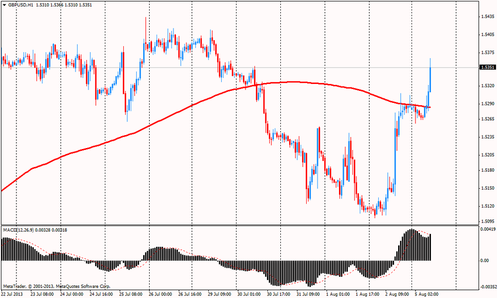 Стоимость фунта существенно выросла против доллара, чему помогла публикация отчета по Британии. Согласно данным, июльский индекс PMI в секторе услуг вырос до уровня 60,2 с 56,9 в июне, достигнув самого высокого значения с декабря 2006 года. Стоит отметить, что согласно средним оценкам экономистов данный индекс должен был вырасти только до 57,4 пунктов. Добавим также, что данный индекс находится выше уровня 50,0 уже в течении семи месяцев подряд, демонстрируя непрерывный прирост в течение всего этого периода. Последний рост был подкреплен быстрым ростом объемов продаж, так как рыночные условия продолжали укрепляться.