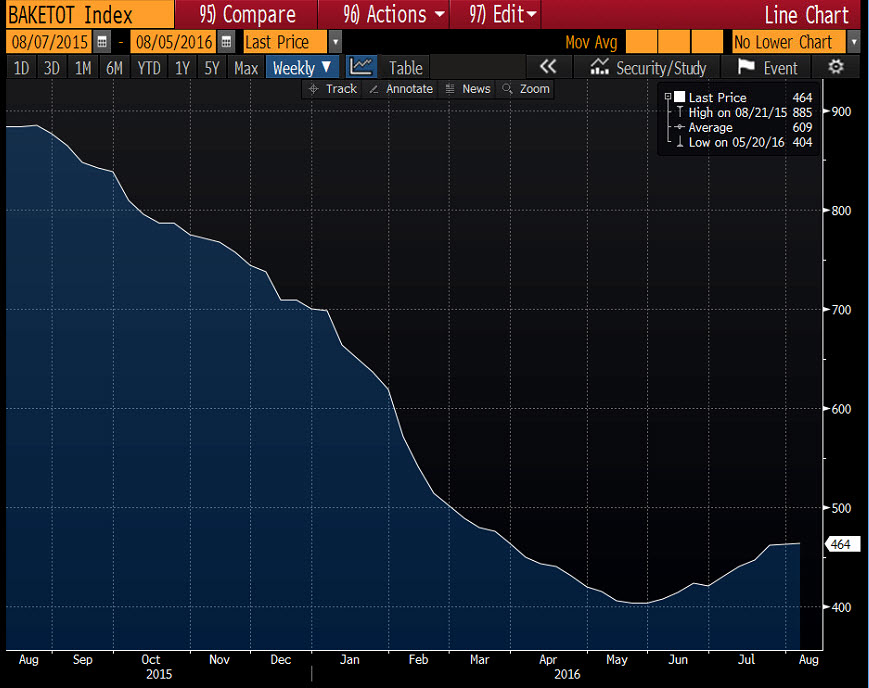 Отчет нефтесервисной компании Baker Hughes показал: с 30 июля по 5 августа июля количество активных буровых установок по добыче нефти в США увеличилось до 381 единицы с 374 единицы, что примерно на 76% меньше рекордного значения, зафиксированного в октябре 2014 года (1609 единиц). Число установок по добыче газа сократилось до 81 единицы с 86 единиц. Тем временем, общее число буровых установок (газовых и нефтяных) повысилось на 1 единицу до 464 единицы.