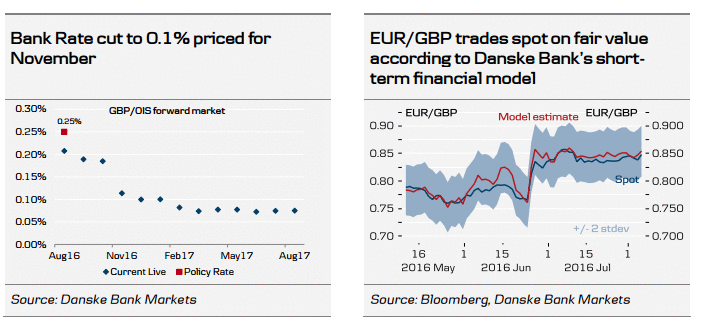 "Как и ожидалось, вчера Банк Англии анонсировал значительный пакет смягчения, в том числе сократил ставку на 25 б.п., увеличил объем программы покупки активов на 70 млрд. фунтов (60 млрд. фунтов для покупки государственных облигаций и 10 млрд. фунтов для покупки корпоративных облигаций) и пересмотрел условия кредитования по схеме TFS. В целом, Банк Англии проявил очень "мягкую" позицию, и указал на возможность дальнейшего снижения ставки позднее в этом году. В ЦБ предупредили, что эффективная нижняя граница процентной ставке находится на уровне выше, но близко к нулю. Банк Англии также подчеркнул, что он может расширить объем программы QE в случае необходимости. Мы ожидаем, что в ходе своего ноябрьского заседания Банк Англии снизит ставку на 15 б.п., до 0,10% и увеличит размер покупок государственных и корпоративных облигаций. Кроме того, мы прогнозируем, что слабый рост ВВП, денежно-кредитная политика и потоки капитала будут оказывать давление на фунт в ближайшие кварталы. Согласно нашим оценкам, пара EUR/GBP вырастет до уровня 0,90 в следующие 6 месяцев. В долгосрочной перспективе, мы ожидаем, что пара EUR/GBP стабилизируется вблизи отметки 0,88", - заявили эксперты.