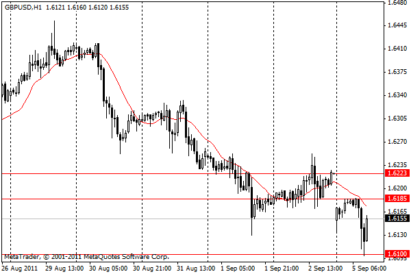 Комментарии: Курс протестировал минимума четверга на $1.6130 и слегка восстановился. В случае возобновления продаж есть риски снижения до $1.6110 (минимум 11 августа) и $1.6070 (минимум 20 июля). Пятничные максимумы на $1.6250/60 представляют ближайшее сопротивление. Далее сопротивление представлено максимумами 31 августа на $1.6330 и пиками 29 августа на $1.6450/55.