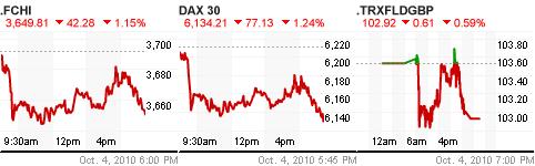Европейские фондовые индексы снижаются шестой день подряд, самая длинная череда негативных закрытий с января 2009. Отчеты о продажах домов в США и количестве фабричных заказов подстегнули негативные ожидания инвесторов относительно динамики развития рынков. Акции Volkswagen AG и Daimler AG были лидерами снижения в автоиндустрии поскольку продажи автомобилей в Германии упали. Рыночная капитализация Gas Natural SDG SA уменьшилась на 3,6% после сообщения о том что спор с Algeria’s Sonatrach может сократить доходы компании на 450 млн. евро. Акции Yara International ASA потеряли 4,2% в связи с понижением рейтинга бумаг со стороны UBS AG. Индекс Stoxx Europe 600 обвалился на 0,5% до отметки 257.74 - минимальный уровень с августа. Давление продолжает оказывать тот факт что борьба с суверенными долгами в Европе подорвет экономическое восстановление. Сегодняшний отчет показал снижение фабричных заказов в США на 0,5% в августе, в связи со снижением спроса в авиапромышленности. При этом прогноз составлял снижение на 0,4%.