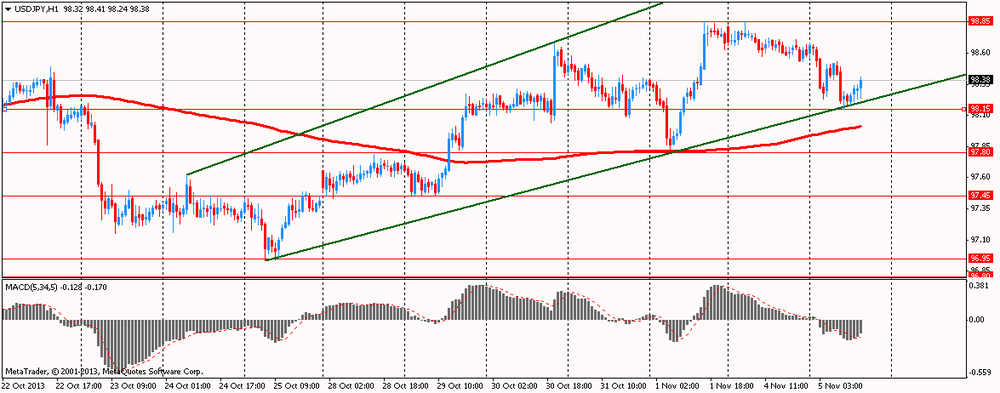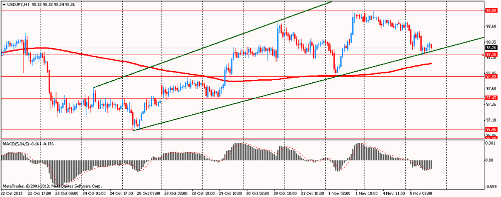 Курс иены заметно снизился против доллара, потеряв все ранее заработанные позиции. Отметим, что первоначально росту иены помогло ухудшения экономических перспектив в еврозоне. На прошлой неделе еврозона опубликовала неожиданно низкие инфляционные показатели, которые вкупе с высоким уровнем безработицы разожгли спекуляции на тему возможного снижения ставки рефинансирования ЕЦБ в четверг. Инфляция CPI в регионе выросла в сентябре на at 0.7% против прогноза 1.1%. Ставка б/р еврозоны остаётся на рекордном максимуме 12,2%. Данные по испанскому рынку труда, выпущенные сегодня утром, показали, что безработица в стране выросла на 87 028 в октябре. Пессимистичные данные заставили ЕЦБ понизить прогноз по росту еврозоны до +1,1% по сравнению с майской оценкой.