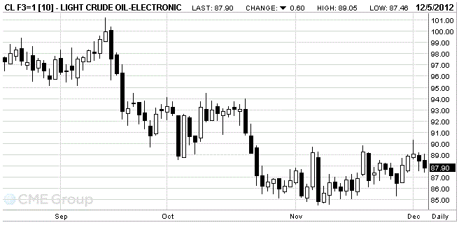 Стоимость январских фьючерсов на американскую легкую нефть марки WTI (Light Sweet Crude Oil) упала до 87,90 доллара за баррель на Нью-Йоркской товарной бирже.