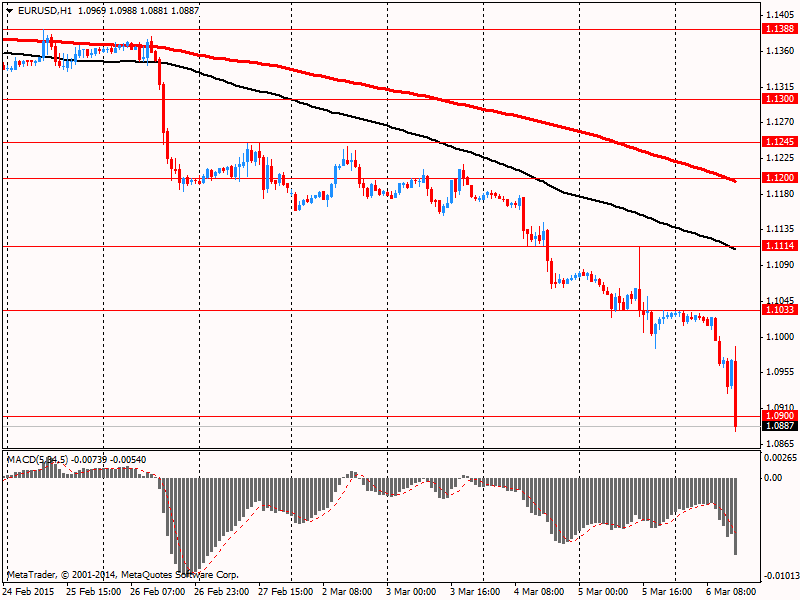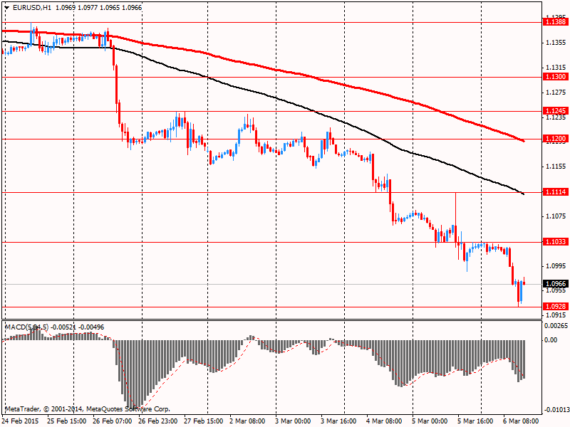 Европейская валюта торгуется со склонностью к снижению по отношению к доллару США, после того как в четверг достигла минимума за одиннадцати с половиной лет. Отношение к евро негативно, так как президент Европейского центрального банка Марио Драги подтвердил вчера, что программа покупки облигаций центробанка на сумму 60 млрд евро в месяц начнется в следующий понедельник. Кроме того, он заявил, что ЕЦБ будет покупать облигации с негативной доходностью до -0,2%. Потенциал снижения евро ограничивается корректировкой позиции перед выходными.