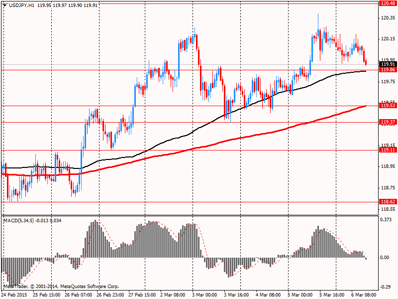 Доллар торгуется около недельного максимума по отношению к иене в ожидании отчета по занятости в несельскохозяйственном секторе США, который будет представлен сегодня. Ожидается, что число занятых выросло в феврале на 241 тыс. против +257 тыс. в предыдущем месяце. Напомним, что доклад от ADP, который участники рынка используют их как ориентир для основной статистики по занятости, показал: в прошлом месяце количество занятых выросло на 212 тыс. человек по сравнению с пересмотренным в сторону повышения показателем за январь на уровне 250 тыс. (первоначально сообщалось о росте на 213 тыс.). Согласно средним прогнозам значение данного показателя должно было составить 219 тыс. Хотя сначала внимание рынка привлечет общий рост числа рабочих мест, более важными, вероятно, будут данные по среднему почасовому заработку. Ожидается рост показателя на 0.2%. Данные выше прогноза, скорее всего, приведут к укреплению доллара США, поскольку рынок передвинет на более раннее время ожидаемые сроки первого повышения ставки ФРС.
