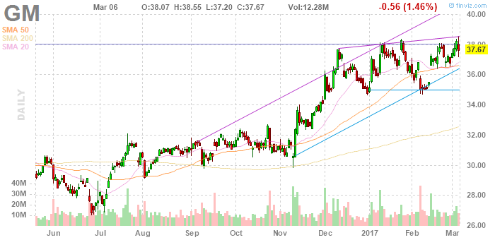 На текущий момент акции General Motors (GM) котируются по $37,67 (-1,46%)