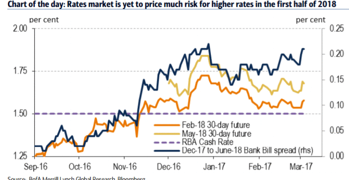 "В конце февраля вероятность повышения ставки ФРС США уже в марте выросла выше 80% после некоторых заявлений представителей регулятора, тогда как до этого она не превышала 40%. Динамика фьючерсов на ключевую ставку ФРС США говорит о том, что рыночные ожидания колеблются между двумя и тремя повышениями ставки ФРС США до конца 2017 года", - говорится в документе.