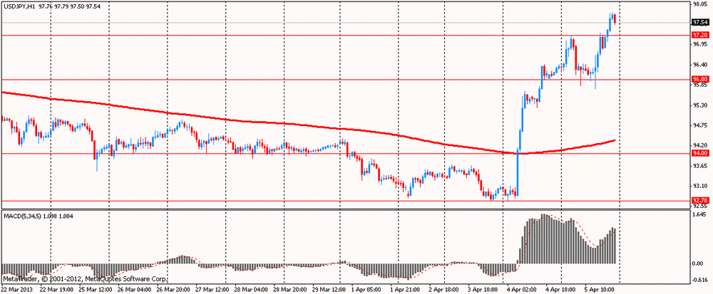 Иена коснулась самого слабого уровня с 2009 года против доллара США после того, как Банк Японии повысил прогнозы экономики и объявил беспрецедентные меры по стимулированию экономики. По итогам заседания в четверг Банк Японии объявил о своем решении сохранить базовую процентную ставку на уровне 0—0,1% годовых и расширить программу по выкупу активов с рынка на 50 трлн иен — до 151 трлн иен в год (1,62 трлн долларов). Кроме того, регулятор намерен начать покупать гособлигации, срок погашения которых превышает установленный лимит в три года. Теперь лимит расширен до семи лет. Банк Японии назвал новую схему смягчения "Количественным и качественным денежно-кредитным смягчением". ЦБ объявил о своем намерении достичь целевого уровня инфляции 2% примерно за два года. Решение было принято большинством голосов, 8 против 1. Против выступил Киути, который не согласился с решением принять схему количественного и качественного смягчения. Стоит отметить, что встреча была первой для нового главы финрегулятора Куроды, который вступил в свою должность в прошлом месяце.