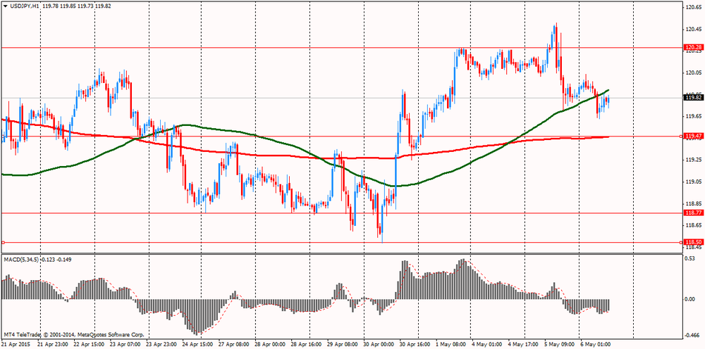 Иена значительно подорожала против доллара США, закрепившись ниже отметки Y120. Доллар оказался под давлением после разочаровывающего мартовского отчета по торговому балансу. Дефицит торгового баланса вырос на 43,1% и с учетом сезонных колебаний достиг $51,37 млрд. в марте. Это было крупнейшим ежемесячным расширением торгового дефицита с декабря 1996 года и сильнейшим по величине значением дефицита с октября 2008 года. Экономисты прогнозировали, что дефицит торгового баланса достигнет 40,3 млрд. долларов в марте. Расширение торгового дефицита было обусловлено наибольшим ростом импорта в серии данных. Это означает, что иностранные товары постоянно поступали в США в марте после нескольких месяцев их торможения из-за трудового спора в портах Западного побережья. Импорт вырос на 7,7% до $ 239,21 млрд. в марте. Между тем, за рубежом спрос на американские товары и услуги остался скромным. Экспорт увеличился на 0,9% с февраля до $ 187,84 млрд. Дефицит торговли в феврале был пересмотрен до $ 35,89 млрд. от первоначально сообщаемых $35,44 млрд. Результат этого месяца был минимальным с октября 2009 года. Трехмесячная скользящая средняя дефицита составила $ 43,31 млрд. в марте, что немного шире, чем $ 41,17 млрд. среднего дефицита годом ранее. Дефицит торгового баланса нефтепродуктов упал до $ 7,67 млрд в марте, это самый низкий показатель с июня 2002 года. Средняя цена барреля сырой нефти, импортируемой в США, составила $ 46,47, по сравнению с $ 93,91 годом ранее.