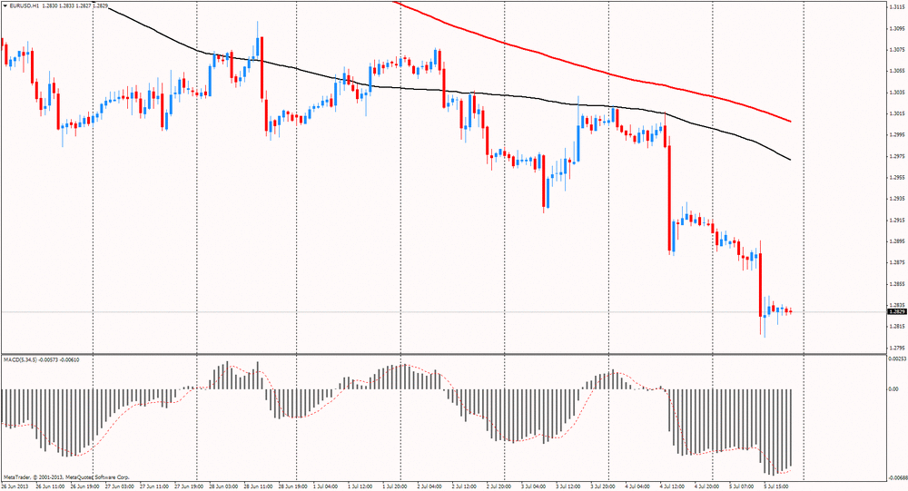 Добавим также, что на динамику торгов оказали влияние данные по США. Как стало известно, спрос на промышленные товары в США вырос в мае, что стало очередным признаком того, что предприятия наращивает расходы после вялой зимы. Всего производственные заказы с учетом сезонных колебаний выросли в мае на $9,9 млрд., или на 2,1%, до $ 485 млрд. по сравнению с предыдущим месяцем, сообщило Министерство торговли. Заказы росли в течение трех из последних четырех месяцев. Увеличение произошло за счет роста спроса в волатильном сегменте самолетов, но спрос на другие предметы, такие как компьютеры, также вырос, хотя и незначительно. Производственные заказы без учета транспорта в мае выросли на 0,6%. В среду евро вырос по отношению к доллару в ожидании заседания ЕЦБ и на фоне закрытия коротких позиций по паре. Укреплению единой валюты способствовали слабые данные по активности в сфере услуг США. Индекс деловой активности в сфере услуг США (ISM Non-Manufacturing) в июне снизился до 52,2 пункта с 53,7 пункта месяцем ранее. Эксперты прогнозировали увеличение показателя до 54,3 пунктов. Индикатор выше 50 пунктов говорил о росте деловой активности, а значение индекса ниже 50 пунктов – о спаде активности. ISM рассчитывал индекс ISM Non-Manufacturing на основании данных корпораций 62 сегментов сферы услуг, на которую приходится до 90% американской экономики. Ранее евро снижался против доллара под влиянием слабых данных PMI в сфере услуг еврозоны. Только Испании и Франции удалось внести ноту позитива в отчёт PMI в сфере услуг, а вот показатели Германии и еврозоны в целом разочаровали инвесторов. В четверг курс евро снизился против доллара, не смотря на ранний рост, после того, как Управляющий совет ЕЦБ принял решение оставить ключевые процентные ставки на прежних уровнях, что совпало с прогнозом. ЕЦБ объявил, что процентная ставка по главным операциям рефинансирования, ставка по кредитам и ставка по депозитам останутся без изменений на уровне 0,50%, 1,00% и 0,00% соответственно. Добавим, что небольшую поддержку евро оказало снижения напряжения в Португалии, так как коалиционное правительство предприняло все усилия для выживания. По мнению аналитиков, важно, что два других министра партии CDS, лидер которой, министр иностранных дел Портас вчера покинул свой пост, останутся в правительстве, сохраняя тем самым коалицию. Таким образом, риск беспорядочных выборов снизился, однако недавние события совершенно очевидно ослабили португальское правительство. Не оказали существенного влияния на ход торгов данные Eurostat по ВВП еврозоны, согласно которым в 1 квартале 2013 ВВП еврозоны с учётом сезонных корректировок отразил спад на 0,3% кв/кв против -0,2% кв/кв в 4 квартале 2012.