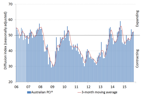 Все четыре подотрасли австралийского строительного сектора демонстрируют рост. Активность суб-индексов этого сектора растет пятый месяц подряд самыми сильными темпами в течение десяти лет с момента начала опроса с сентября 2005 года.